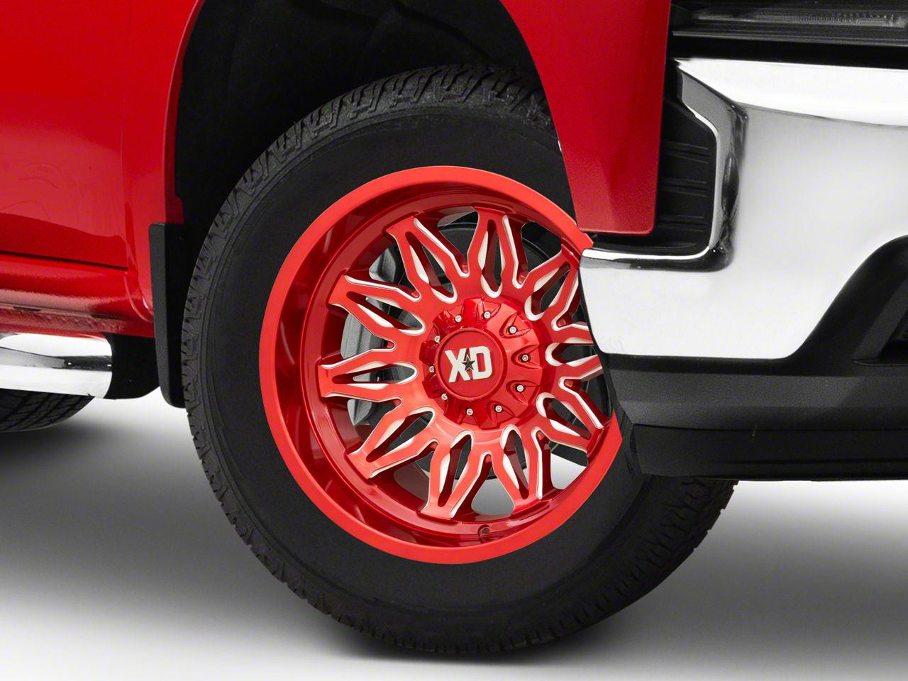 Application. This XD Gunner Candy Red Milled 6-Lug Wheel; 20x10; -18mm Offset with a backspace of 4.791 Inch, 121.7mm; and bolt pattern of 6 x 139.7mm (6 x 5.5-Inch) contributes to impeccable alignment and driving stability. Designed to fit 2019-2026 Silverado 1500 models, sold individually.