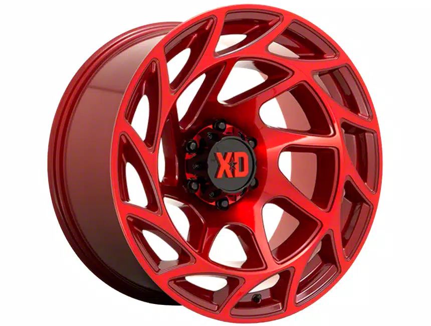 XD Onslaught Candy Red 6-Lug Wheel; 20x12; -44mm Offset exudes sophistication with its finish, offering a sleek and modern appeal to any vehicle it adorns. The design is meticulously crafted to enhance the aesthetic of your vehicle, giving it a distinctive and upscale look. Perfect for those seeking to elevate their vehicle's style, this wheel blends seamlessly with both contemporary and classic vehicle designs, making it a versatile choice for a wide range of vehicles. Its robust construction ensures durability, making it a reliable choice for drivers who value both style and quality.