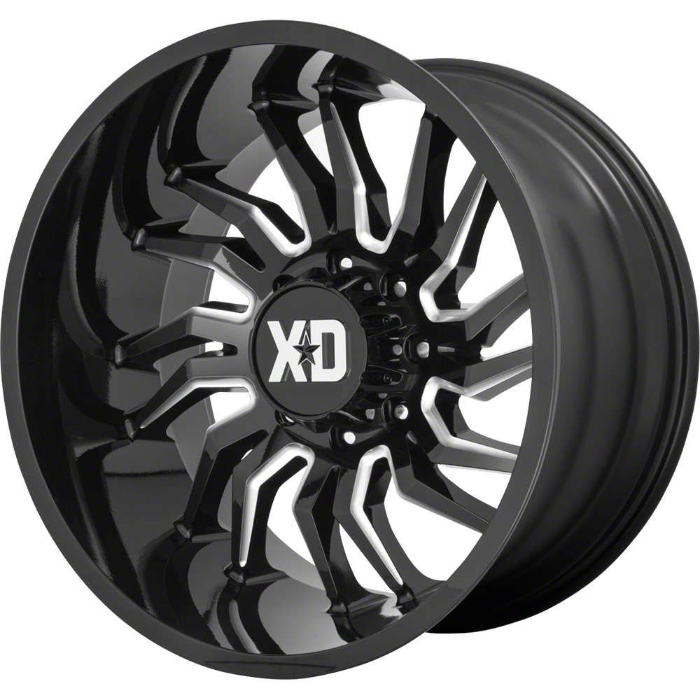 XD Tension Gloss Black Milled 8-Lug Wheel; 22x12; -44mm Offset. Enhance your vehicle's look with the XD Tension Gloss Black Milled 8-Lug Wheel. This premium wheel adds a touch of elegance and class to your vehicle, complementing its sophisticated aesthetic.