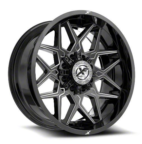 This 20x10 XF Offroad XF-238 Gloss Black and Milled 8-Lug Wheel; 20x10; -12mm Offset is completed in a high-quality gloss black finish with steel milled accents that will make everyone take notice. For added looks and strength, the wheel features a durable clear coat that withstands the rigors of daily driving.