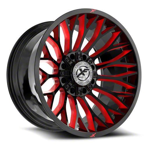This 20x10 XF Offroad XF-237 Gloss Black and Red Milled 8-Lug Wheel; 20x10; -12mm Offset is completed in a high-quality gloss black finish with red accents to make your wheel the envy of everyone. For added looks and durability, the wheels has a durable clear coat that withstand the rigors of daily driving.
