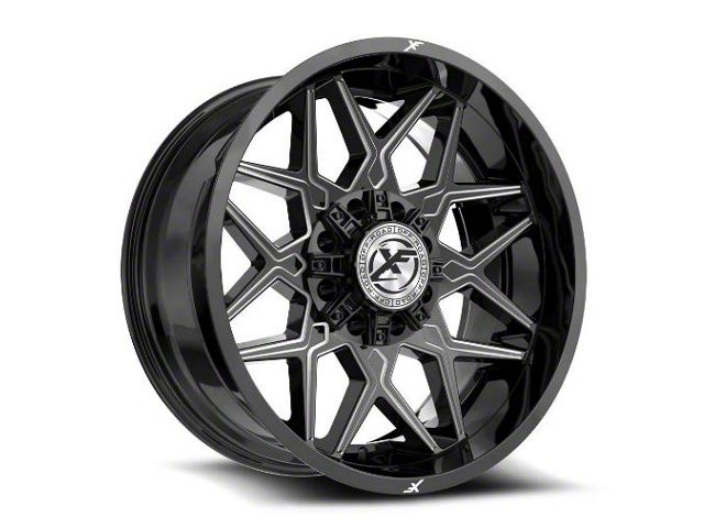 This 20x10 XF Offroad XF-238 Gloss Black and Milled 8-Lug Wheel; 20x10; -12mm Offset is completed in a high-quality gloss black finish with steel milled accents that will make everyone take notice. For added looks and strength, the wheel features a durable clear coat that withstands the rigors of daily driving.