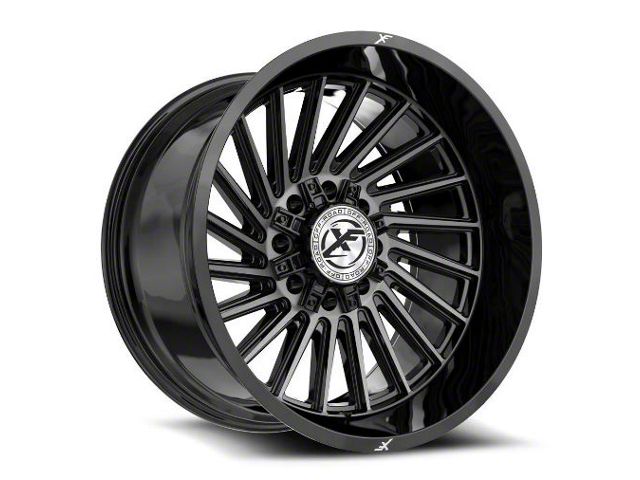 This 20x9 XF Offroad XF-239 Gloss Black and Brushed Double Dark Tint 8-Lug Wheel; 20x9; 0mm Offset is completed in a high-quality gloss black finish with brushed accents to make your wheel the envy of everyone. For added looks and durability, the wheels has a durable clear coat that withstand the rigors of daily driving.