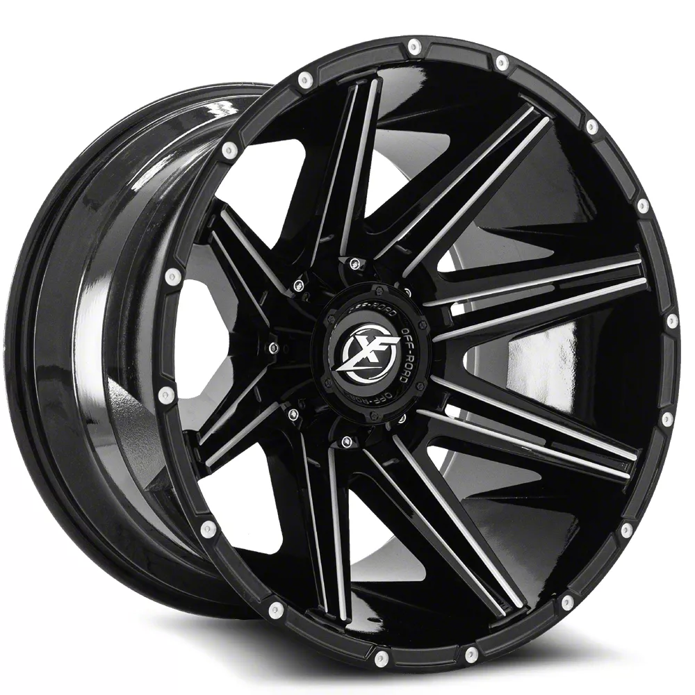 This 18x9 XF Offroad XF-220 Gloss Black and Milled 8-Lug Wheel; 18x9; 12mm Offset is completed in a high-quality gloss black finish with steel milled accents that will make everyone take notice. For added looks and strength, the wheel features a durable clear coat that withstands the rigors of daily driving.