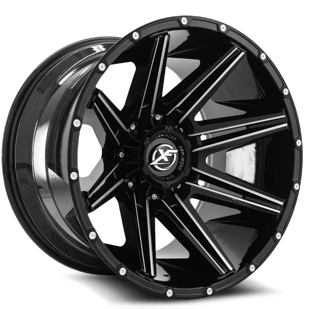 This 20x12 XF Offroad XF-220 Gloss Black and Milled 8-Lug Wheel; 20x12; -44mm Offset is completed in a high-quality gloss black finish with steel milled accents that will make everyone take notice. For added looks and strength, the wheel features a durable clear coat that withstands the rigors of daily driving.