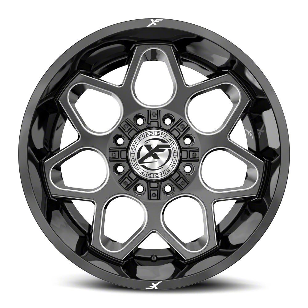 This 20x12 XF Offroad XF-233 Gloss Black and Milled 8-Lug Wheel; 20x12; -44mm Offset is completed in a high-quality gloss black finish with steel milled accents that will make everyone take notice. For added looks and strength, the wheel features a durable clear coat that withstands the rigors of daily driving.