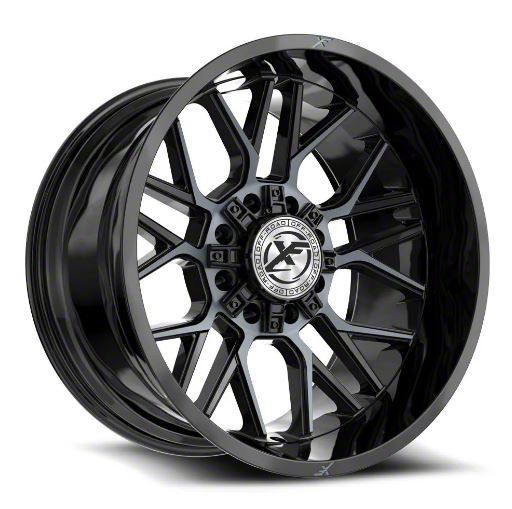 This 22x12 XF Offroad XF-235 Gloss Black and Machined Titanium Double Dark Tint 8-Lug Wheel; 22x12; -44mm Offset is completed in a high-quality gloss black finish with machined titanium double dark accents to make your wheel the envy of everyone. For added looks and durability, the wheels has a durable clear coat that withstand the rigors of daily driving.