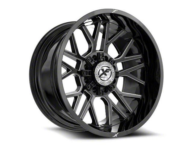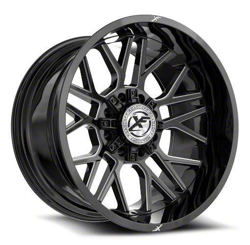 This 20x10 XF Offroad XF-235 Gloss Black and Milled 8-Lug Wheel; 20x10; -12mm Offset is completed in a high-quality gloss black finish with steel milled accents that will make everyone take notice. For added looks and strength, the wheel features a durable clear coat that withstands the rigors of daily driving.