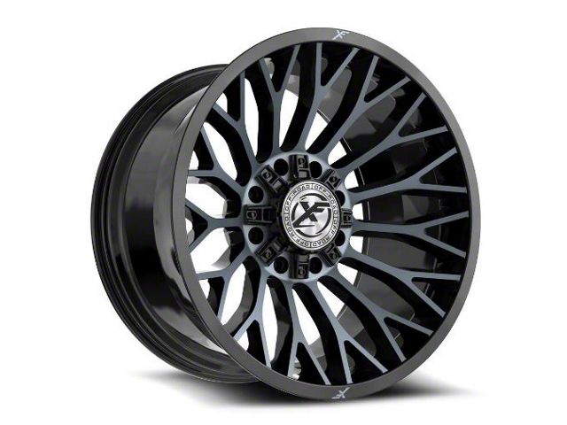 XF Offroad XF-237 Gloss Black and Machined Titanium Double Dark Tint 8-Lug Wheel; 20x10; -24mm Offset is a visually striking choice, offering a combination of rugged durability and modern styling. Its design complements off-road and sporty vehicles alike, enhancing the overall aesthetic appeal.