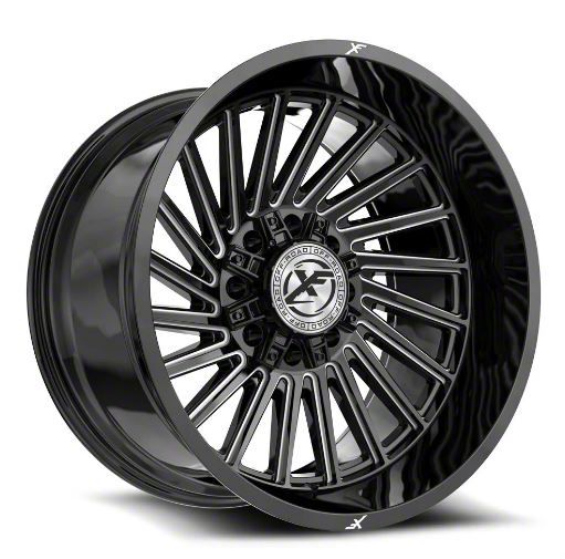 This 20x9 XF Offroad XF-239 Gloss Black and Milled 8-Lug Wheel; 20x9; 12mm Offset is completed in a high-quality gloss black finish with steel milled accents that will make everyone take notice. For added looks and strength, the wheel features a durable clear coat that withstands the rigors of daily driving.