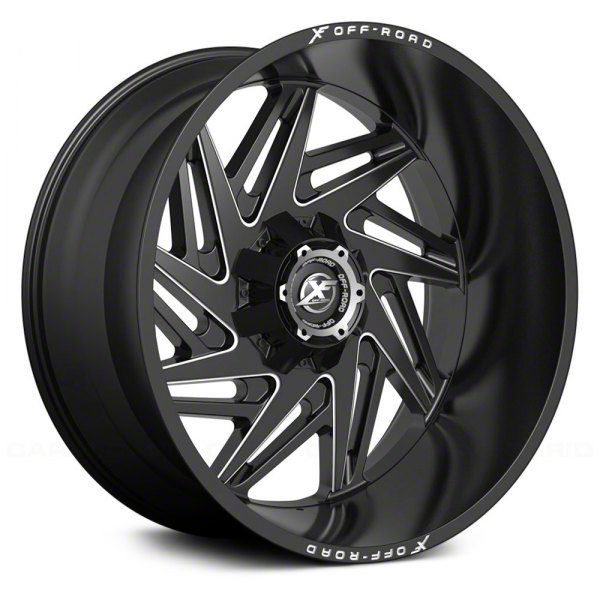 Gloss Black Finish with Milled Accents. This XF Off-road Wheel is completed in a high quality, black finish with milled accents for a contrast in appearance. For added protection and good looks, this Wheel features a durable, gloss clear coat that is tough enough to stand up against the hazards of everyday driving - including road chips and pitting.