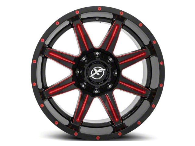 XF Offroad XF-215 Gloss Black Red Milled 6-Lug Wheel; 20x9; 12mm Offset exudes sophistication with its finish, offering a sleek and modern appeal to any vehicle it adorns. The design is meticulously crafted to enhance the aesthetic of your vehicle, giving it a distinctive and upscale look. Perfect for those seeking to elevate their vehicle's style, this wheel blends seamlessly with both contemporary and classic vehicle designs, making it a versatile choice for a wide range of vehicles. Its robust construction ensures durability, making it a reliable choice for drivers who value both style and quality.