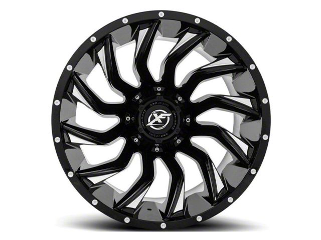 This 20x10 XF Offroad XF-224 Gloss Black Milled 6-Lug Wheel is completed in a high-quality gloss black finish with steel milled accents that will create a striking appearance. There's a durable clear coat that protects against driving hazards.