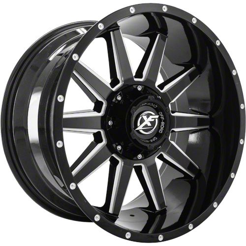 Gloss Black Finish with Milled Accents. This XF Off-road Wheel has a high quality, black finish that features milled accents for an impressive appearance. For added protection and good looks, this Wheel is completed in a durable, gloss clear coat that is tough enough to stand up against the hazards of everyday driving - including road chips and pitting.