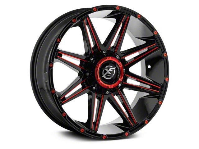 XF Offroad XF-220 Gloss Black Red Milled and Red Milled Dots 6-Lug Wheel; 17x9; 0mm Offset - Elevate your vehicle's style with this wheel's striking design. Reflecting the XF Offroad's commitment to quality, it promises to add a touch of elegance and a strong character to your ride. Perfect for those seeking to make an impression without saying a word.