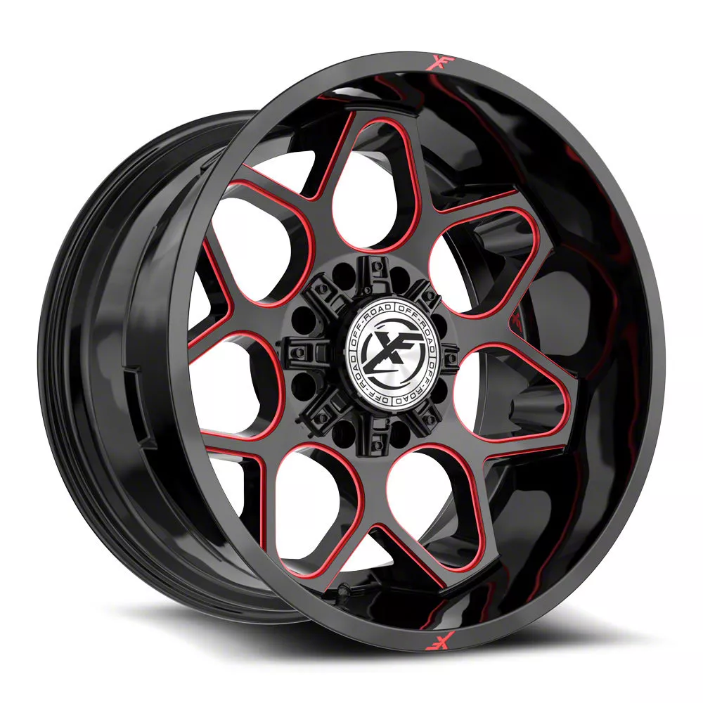 XF Offroad XF-233 Gloss Black and Red Milled 8-Lug Wheel; 20x10; -12mm Offset This XF Offroad XF-233 Gloss Black and Red Milled 8-Lug Wheel; 20x10; -12mm Offset brings a sleek and modern touch to your vehicle with its striking design. Its refined finish and bold styling make it an excellent choice for those looking to enhance their car’s visual appeal. Whether you're aiming for a sporty look or a more aggressive stance, this wheel stands out as a premium addition. Perfect for drivers who appreciate a stylish upgrade.