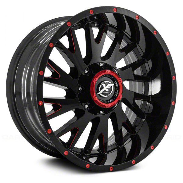 XF Offroad XF-221 Gloss Black Red Milled 5-Lug Wheel; 20x12; -44mm Offset - Enhance your vehicle's style with the XF Offroad wheel. This wheel's distinctive design and finish complement your vehicle's aesthetics, making a bold statement. It's crafted to accentuate the unique character of your car, emphasizing a premium and robust appeal.