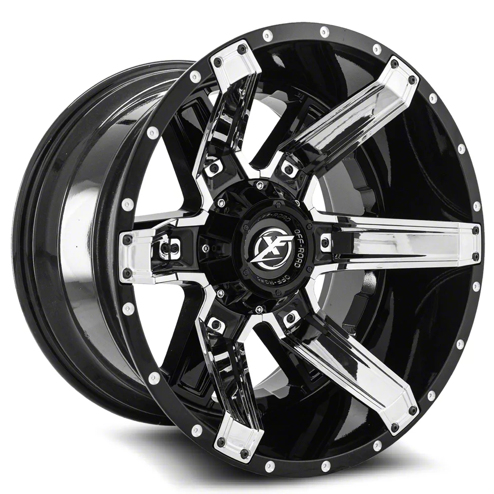 XF Offroad XF-214 Gloss Black with Chrome Inserts 8-Lug Wheel; 20x9; 0mm Offset This XF Offroad XF-214 Gloss Black with Chrome Inserts 8-Lug Wheel; 20x9; 0mm Offset brings a sleek and modern touch to your vehicle with its striking design. Its refined finish and bold styling make it an excellent choice for those looking to enhance their car’s visual appeal. Whether you're aiming for a sporty look or a more aggressive stance, this wheel stands out as a premium addition. Perfect for drivers who appreciate a stylish upgrade.