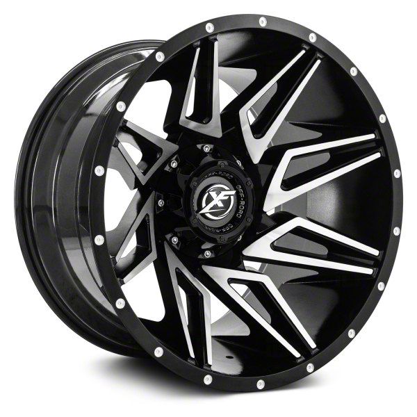 Gloss Black Finish with Machined Accents. This XF Off-road Wheel has a high quality, black finish that features machined accents for an impressive appearance. For added protection and good looks, this Wheel is completed in a durable, gloss clear coat that is tough enough to stand up against the hazards of everyday driving - including road chips and pitting.