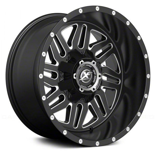 Matte Black Finish with Milled Accents. This XF Off-road Wheel has a high quality, black finish that features milled accents for an impressive appearance. For added protection and good looks, this Wheel is completed in a durable, matte clear coat that is tough enough to stand up against the hazards of everyday driving - including road chips and pitting.