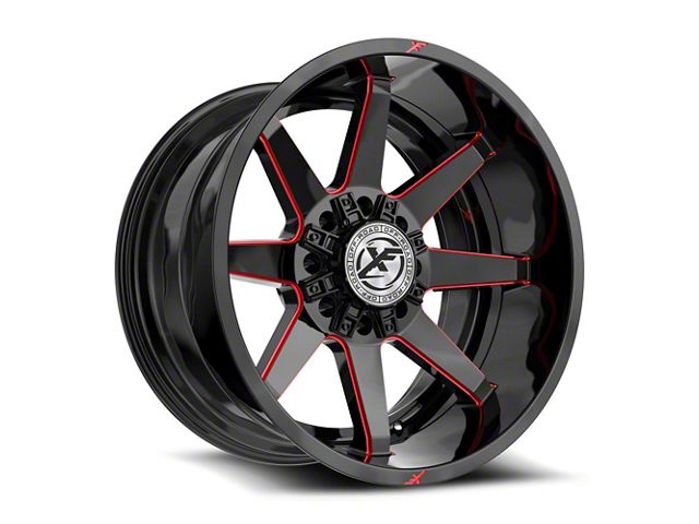 This 20x9 XF Offroad XF-236 Gloss Black and Red Milled 8-Lug Wheel; 20x9; 12mm Offset is completed in a high-quality gloss black finish with red accents to make your wheel the envy of everyone. For added looks and durability, the wheels has a durable clear coat that withstand the rigors of daily driving.