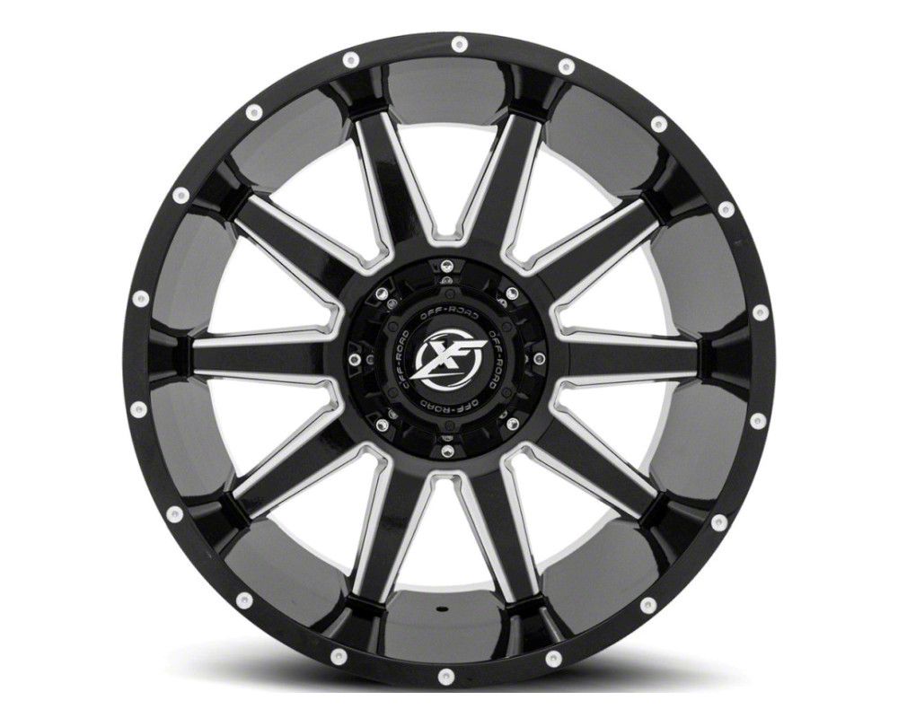 The 20x9 XF Offroad XF-219 Gloss Black Milled 6-Lug Wheel is given a gloss black finish to keep your wheel looking sharp, but the steel milled accents are where it really shines through, literally. It makes the split section of the spokes pop and adds accents along the faux beadlock.