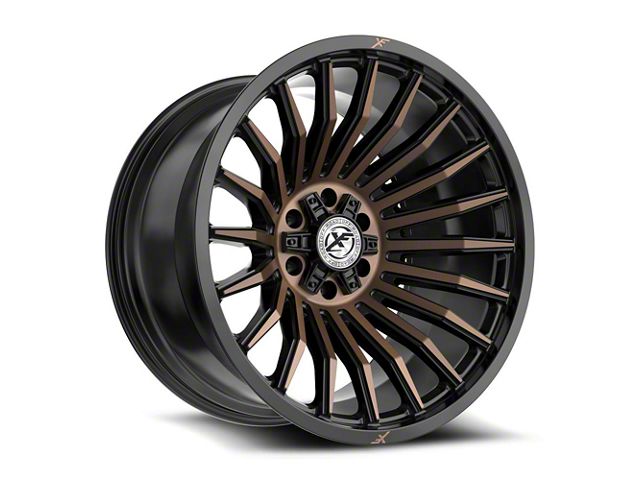 This 20x12 XF Offroad XF-231 Satin Black and Bronze Machined Double Dark Tint 6-Lug Wheel; 20x12; -44mm Offset is completed in a high-quality satin black finish with bronze machined double dark accents to make your wheel the envy of everyone. For added looks and durability, the wheels has a durable clear coat that withstand the rigors of daily driving.