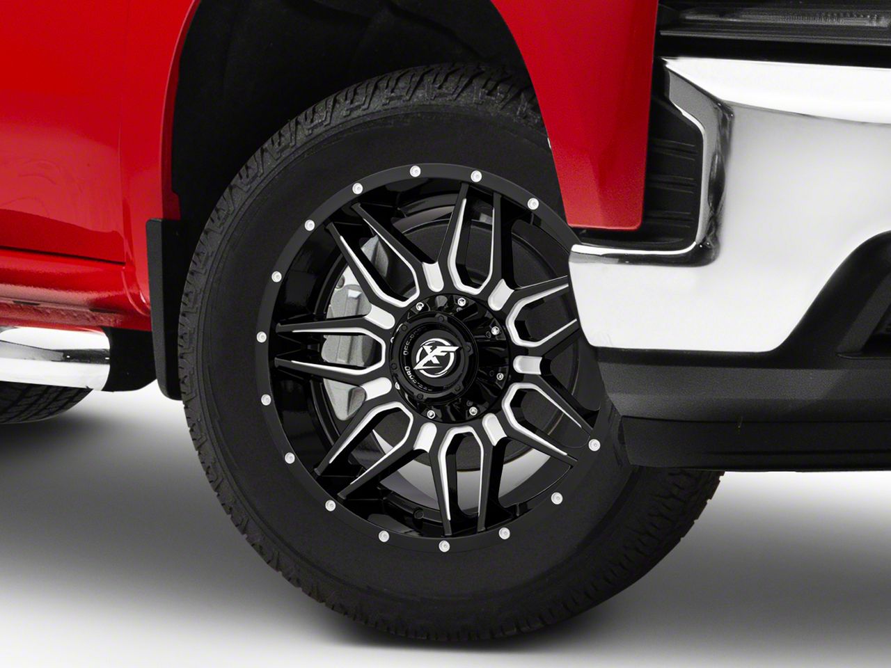 Application. This XF Offroad XF-222 Gloss Black Milled 6-Lug Wheel; 20x9; 12mm Offset is designed to fit 2019-2026 Chevrolet Silverado 1500 models. Sold individually.