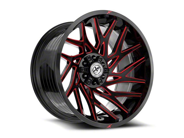 XF Offroad XF-229 Gloss Black and Red Milled 6-Lug Wheel; 22x12; -44mm Offset is a visually striking choice, offering a combination of rugged durability and modern styling. Its design complements off-road and sporty vehicles alike, enhancing the overall aesthetic appeal.