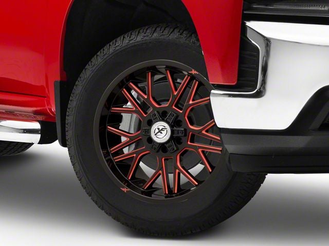 XF Offroad XF-235 Gloss Black Red Milled 6-Lug Wheel; 20x10; -12mm Offset - Enhance your vehicle's style with the XF Offroad wheel. This wheel's distinctive design and finish complement your vehicle's aesthetics, making a bold statement. It's crafted to accentuate the unique character of your car, emphasizing a premium and robust appeal.