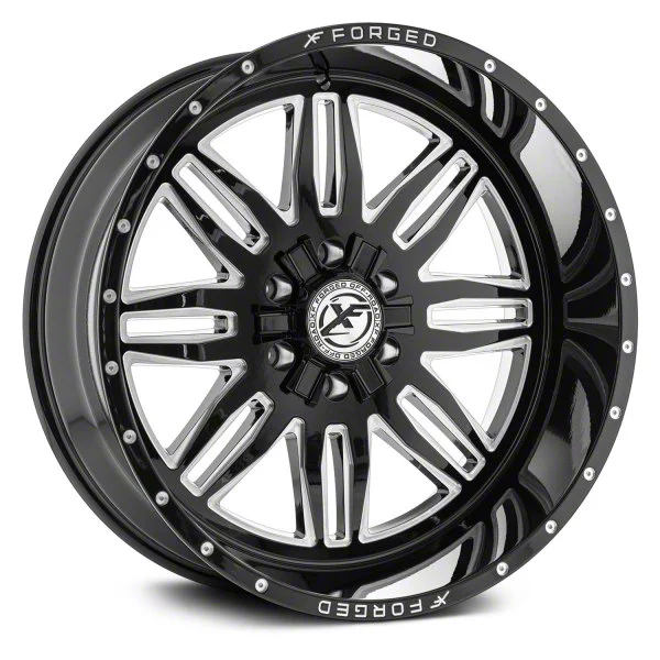 XFX Flow XFX-303 Gloss Black Milled 8-Lug Wheel; 24x14; -76mm Offset. The XFX Flow XFX-303 Gloss Black Milled 8-Lug Wheel offers a striking balance of style and refinement. Its unique design accentuates the vehicle's aesthetic, while the premium construction underscores its robust nature. This wheel is a perfect choice for those seeking both elegance and a strong visual statement.