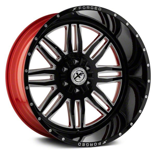 XFX Flow XFX-303 Gloss Black Milled with Red Inner 8-Lug Wheel; 24x12; -44mm Offset This XFX Flow XFX-303 Gloss Black Milled with Red Inner 8-Lug Wheel; 24x12; -44mm Offset brings a sleek and modern touch to your vehicle with its striking design. Its refined finish and bold styling make it an excellent choice for those looking to enhance their car’s visual appeal. Whether you're aiming for a sporty look or a more aggressive stance, this wheel stands out as a premium addition. Perfect for drivers who appreciate a stylish upgrade.