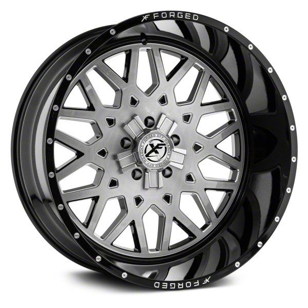 This 22x12 XFX Flow XFX-307 Brushed Milled with Black Lip 8-Lug Wheel is completed in a high-quality brushed finish with steel milled accents for an awesome appearance. There's a durable clear coat finish that protects against driving hazards.