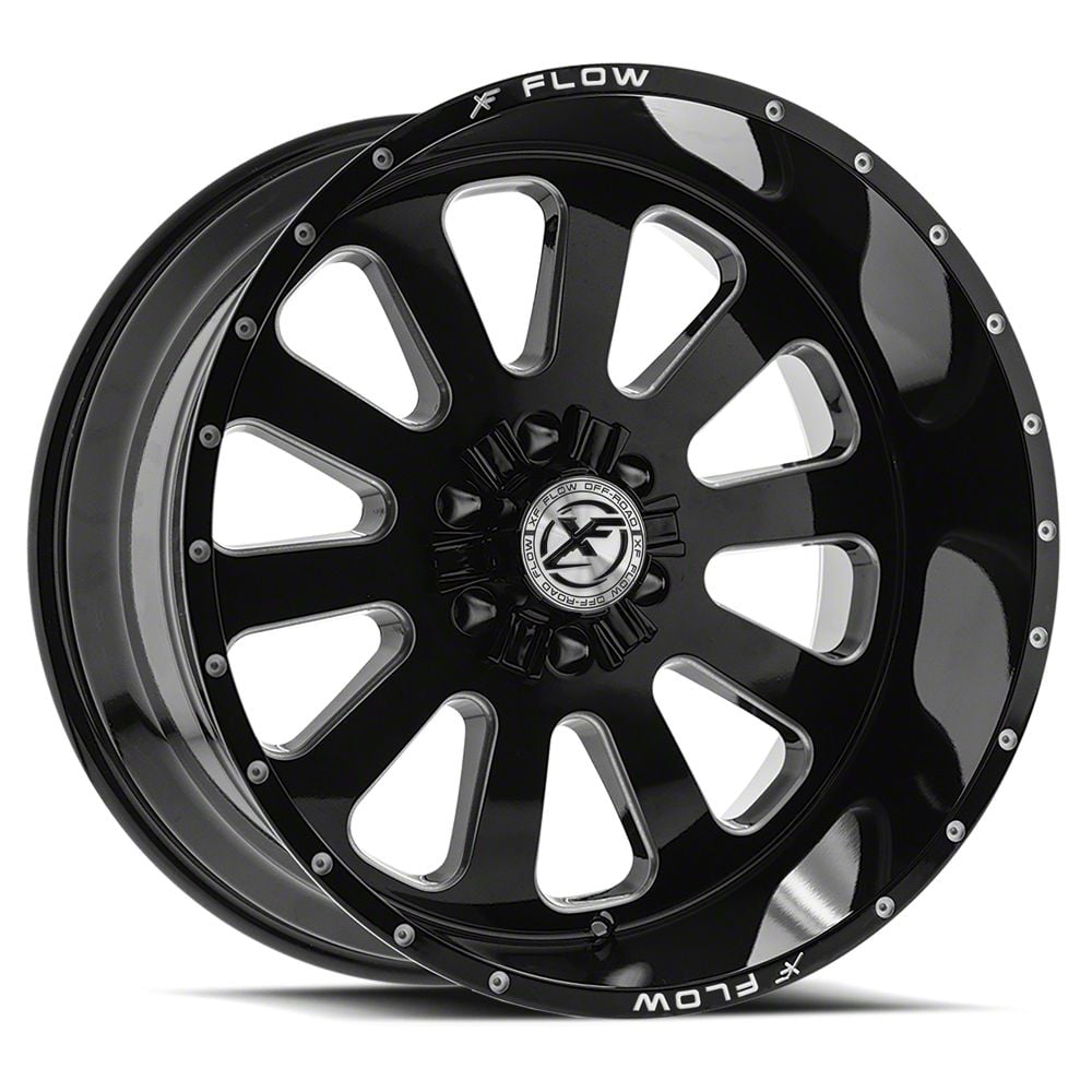 This 17x10 XFX Flow XFX-302 Gloss Black and Milled 6-Lug Wheel; 17x10; 12mm Offset is completed in a high-quality gloss black finish with steel milled accents that will make everyone take notice. For added looks and strength, the wheel features a durable clear coat that withstands the rigors of daily driving.