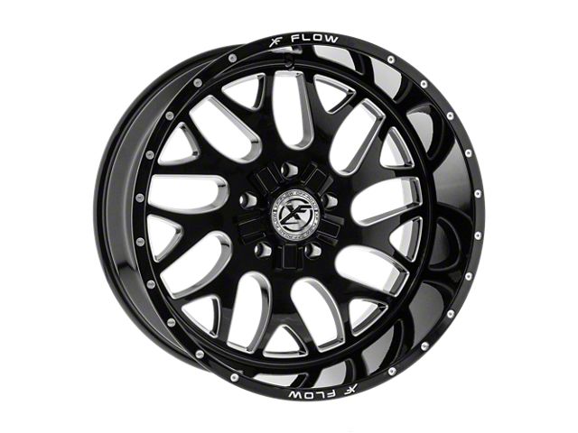 This 20x10 XFX Flow XFX-301 Gloss Black and Milled 6-Lug Wheel; 20x10; -24mm Offset is completed in a high-quality gloss black finish with steel milled accents that will make everyone take notice. For added looks and strength, the wheel features a durable clear coat that withstands the rigors of daily driving.