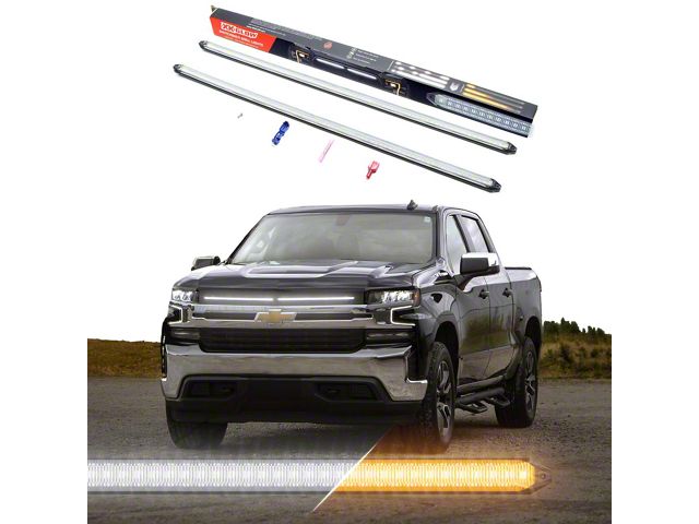 Innovative Lighting Enhancement. XK Glow Switchback Grille Lights are a state-of-the-art addition to any vehicle, offering advanced lighting features such as dynamic startup animation and sequential turn signals. These twenty-two inch lights come in pairs and provide a dual function with DRL (Daytime Running Light) mode, enhancing visibility and safety. Their IP67 rating ensures they are both water and dustproof, making them suitable for all weather conditions.