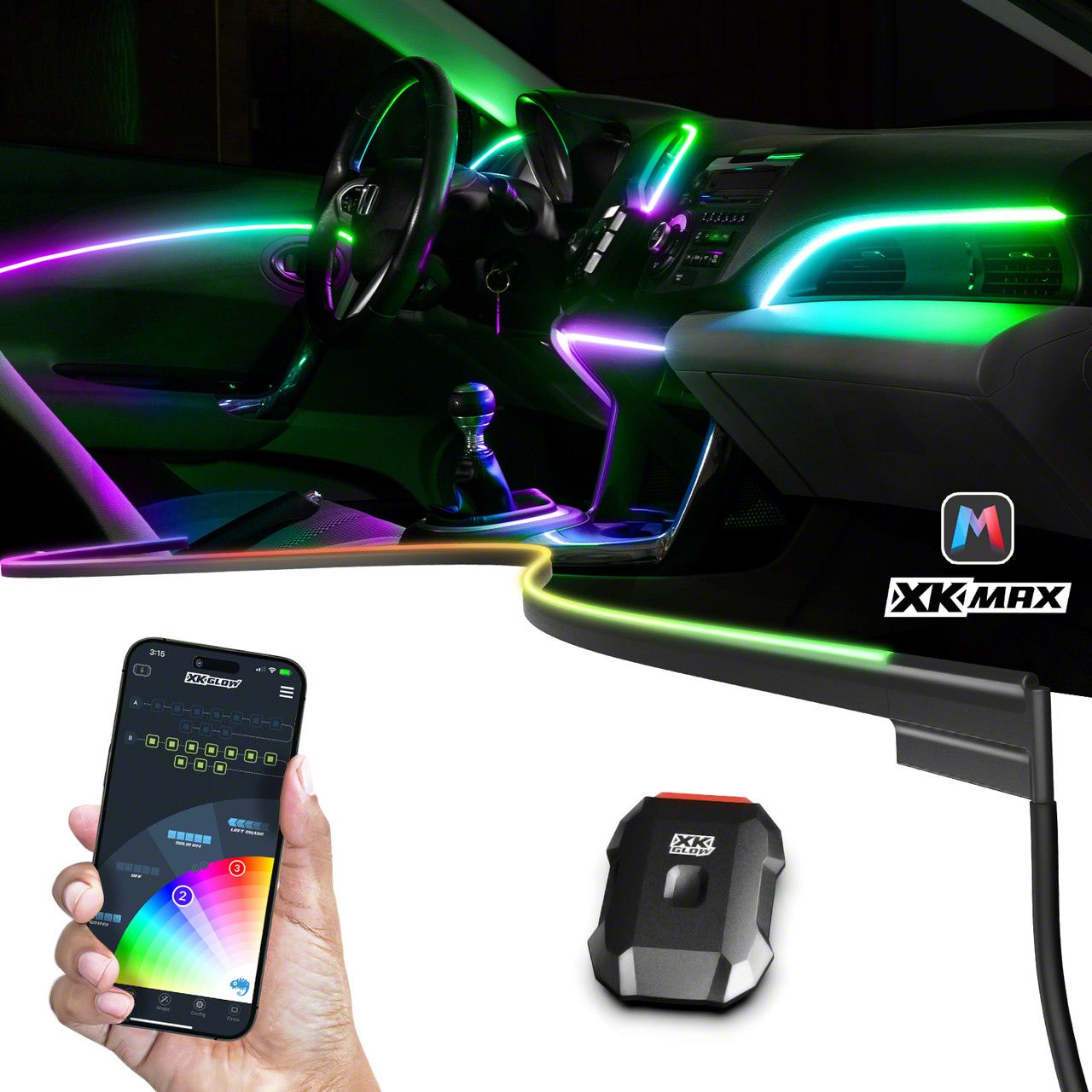 XK Glow XKmax Fiber Optic Interior Ambient Light Strip Kit with Bluetooth-Controlled App; 2 x 43-Inch (Universal; Some Adaptation May Be Required)