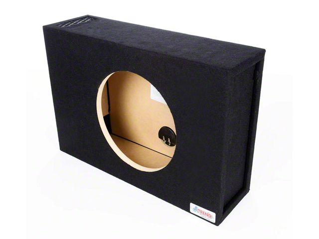 Construction and Appearance. This subwoofer enclosure features a 1-inch high-grade MDF front baffle for ultimate structural rigidity. It offers a 0.59-cubic-feet net volume of internal air space, sealed with specially formulated aliphatic wood glue for maximum durability. The enclosure is covered with premium OEM grade carpeting, providing a sleek factory look.