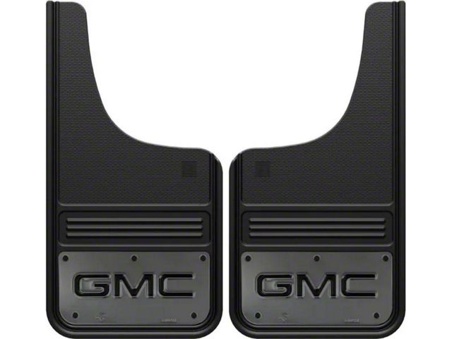 Application. These 12-Inch x 23-Inch Mud Flaps with a GMC Logo offer universal fitment.