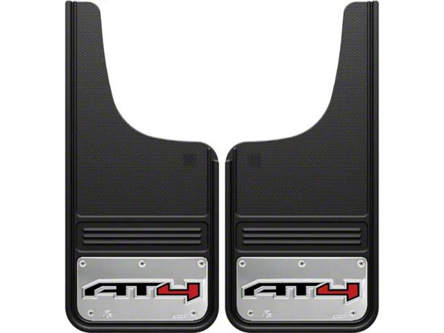 Application. The 12-Inch x 26-Inch Mud Flaps with AT4 Logo; Front or Rear has a universal fitment.