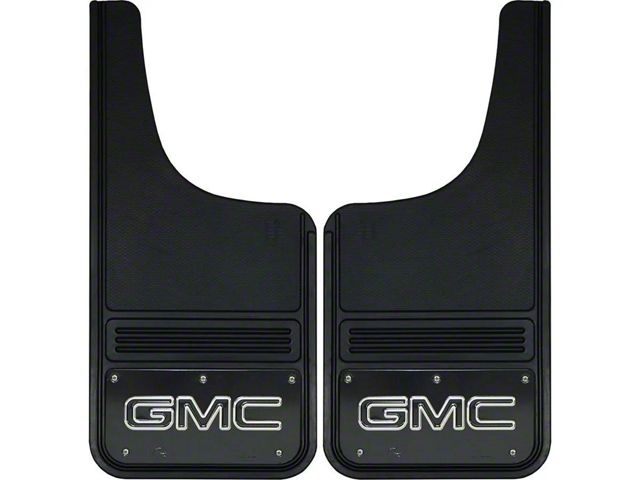 Harsh Debris Negation. Crafted with premium quality materials, these 12-Inch x 26-Inch Mud Flaps with Black GMC Logo are built to withstand the harshest road conditions, ensuring your vehicle remains free from mud, debris, and other road contaminants. Whether you're driving on rocky terrain or traversing muddy roads, these mud flaps are here to safeguard your GMC from unwanted damage.