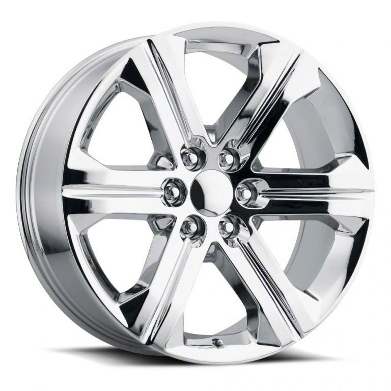 The 24x10 2018 Sierra Replica Chrome 6-Lug Wheel is completed in a high-quality chrome finish that is accomplished in a 3-step process. First is copper to adhere to the wheel, followed by nickel for strength and finally chrome for that amazing look.