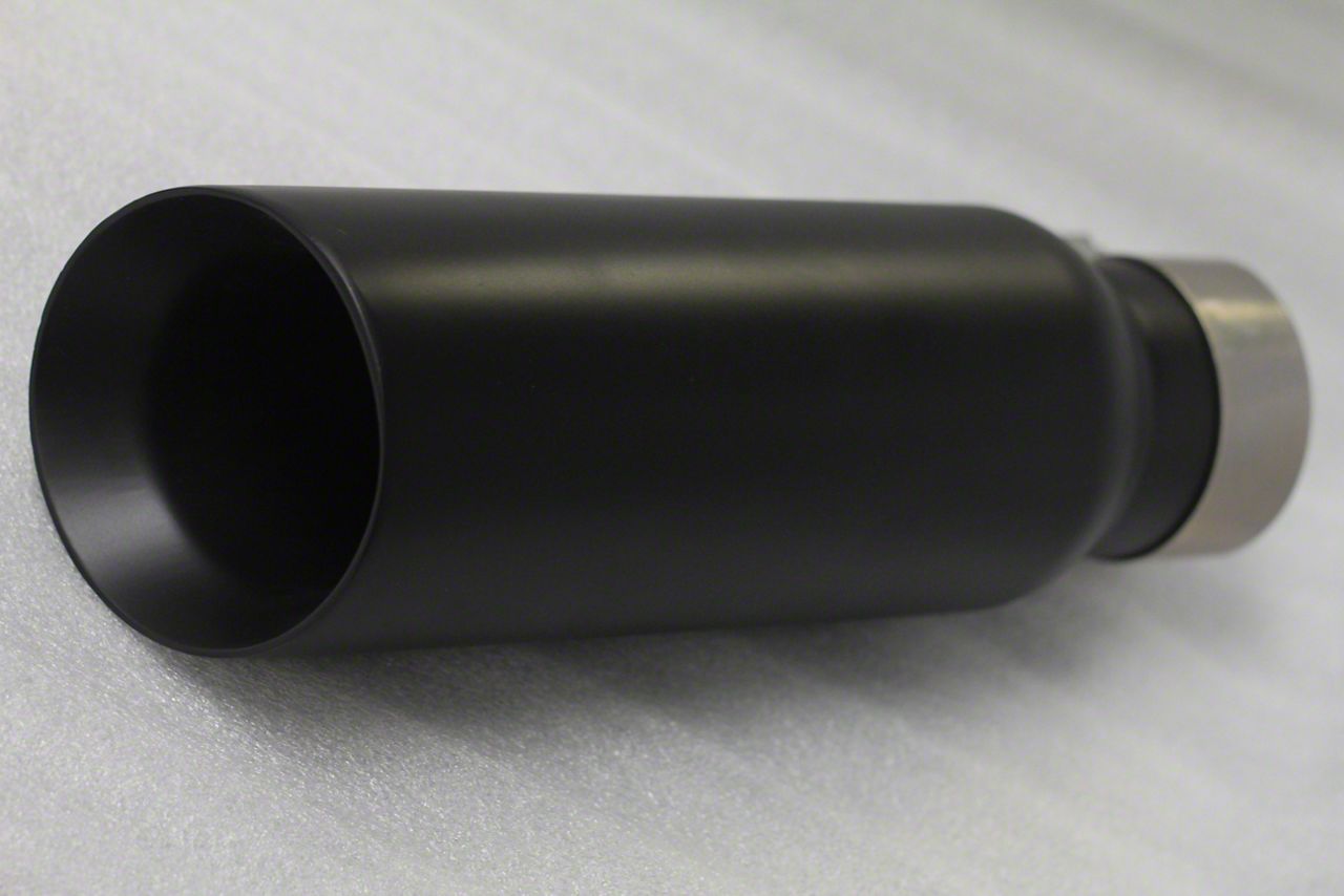 Application. The Angled Cut Rolled End Round Exhaust Tip; 4-Inch; Black is designed to fit 2.75-inch tailpipes.