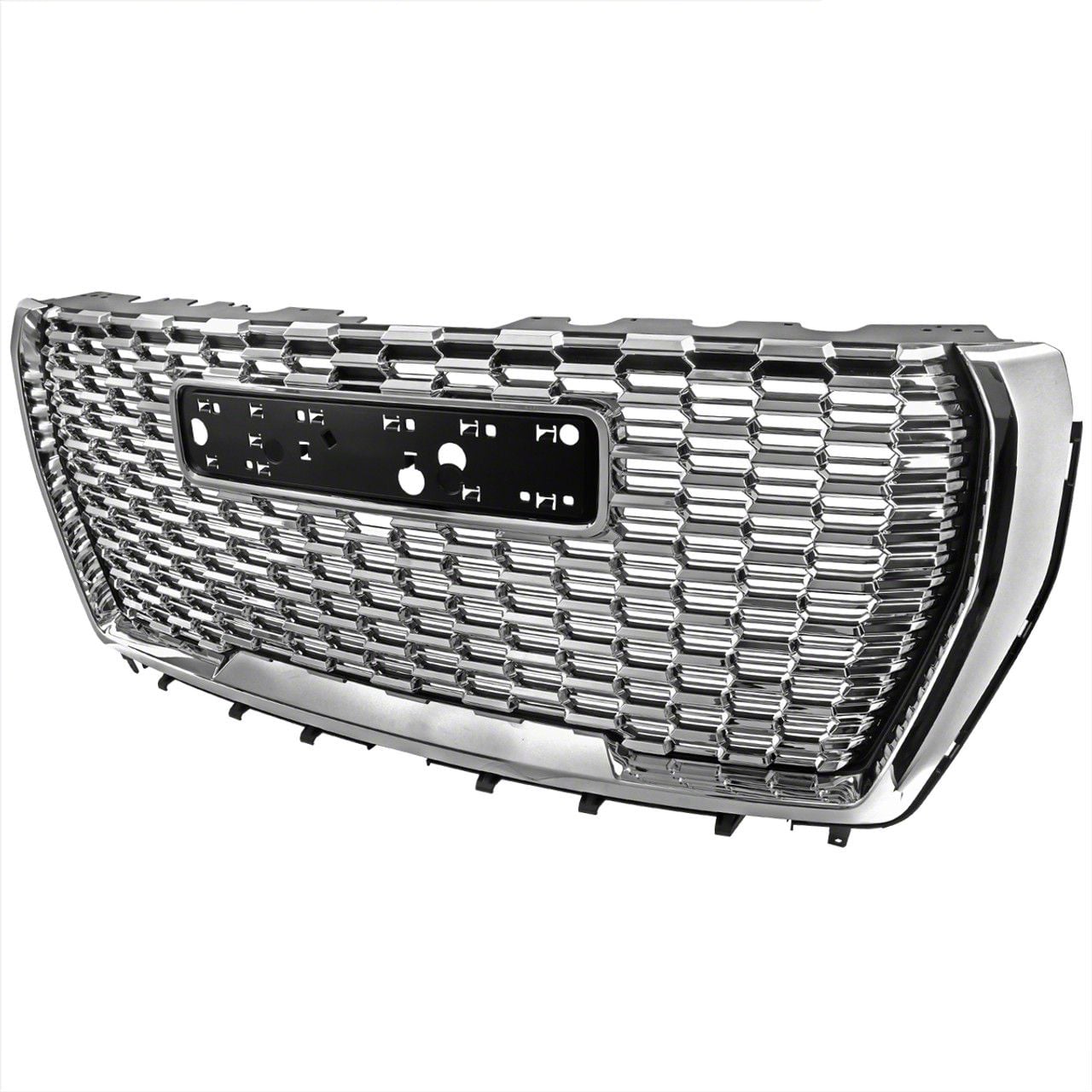 Chrome Denali Style. Upgrade the front-end of your Yukon with this Denali Style Mesh Upper Replacement Grille; Chrome. Designed to provide an immediate aesthetic boost, this grille not only looks phenomenal but also offers enhanced airflow to your vehicle's engine. Coated in a high-quality chrome finish, this grille not only shines but also resists chipping, peeling, and fading, ensuring a long-lasting impression.