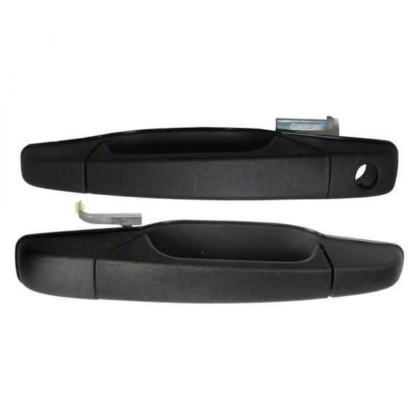 Accurate Door Fitment. This Exterior Door Handle; Front Passenger Side; Textured Black is made of sturdy ABS plastic compounds and enables excellent cabin access for ensured vehicle and passenger security. This door handle has a smooth black finish that will match the appearance of any vehicle. Its precision-engineered design provides an accurate fit to your vehicle's door, ensuring that it remains firmly in place.