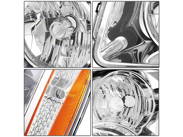 Restored Lighting Performance. Upgrade your Yukon Denali with these Factory Style Headlights featuring amber corners. Designed for superior illumination, these headlights enhance visibility and safety during nighttime or adverse weather conditions. The clear lens and chrome housing provide a sleek, polished look, making them both functional and aesthetically pleasing.