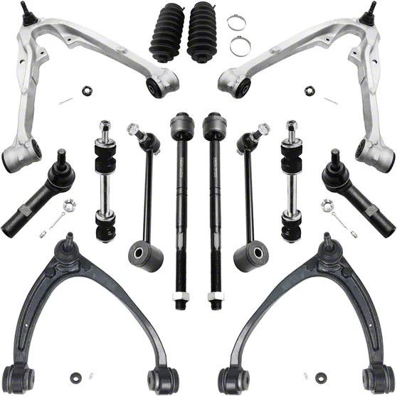 Front Control Arms Kit. The Front Control Arms with Sway Bar Links and Tie Rods are essential replacement components designed for durability and performance. This kit provides a better ride quality by ensuring superior handling and stability.