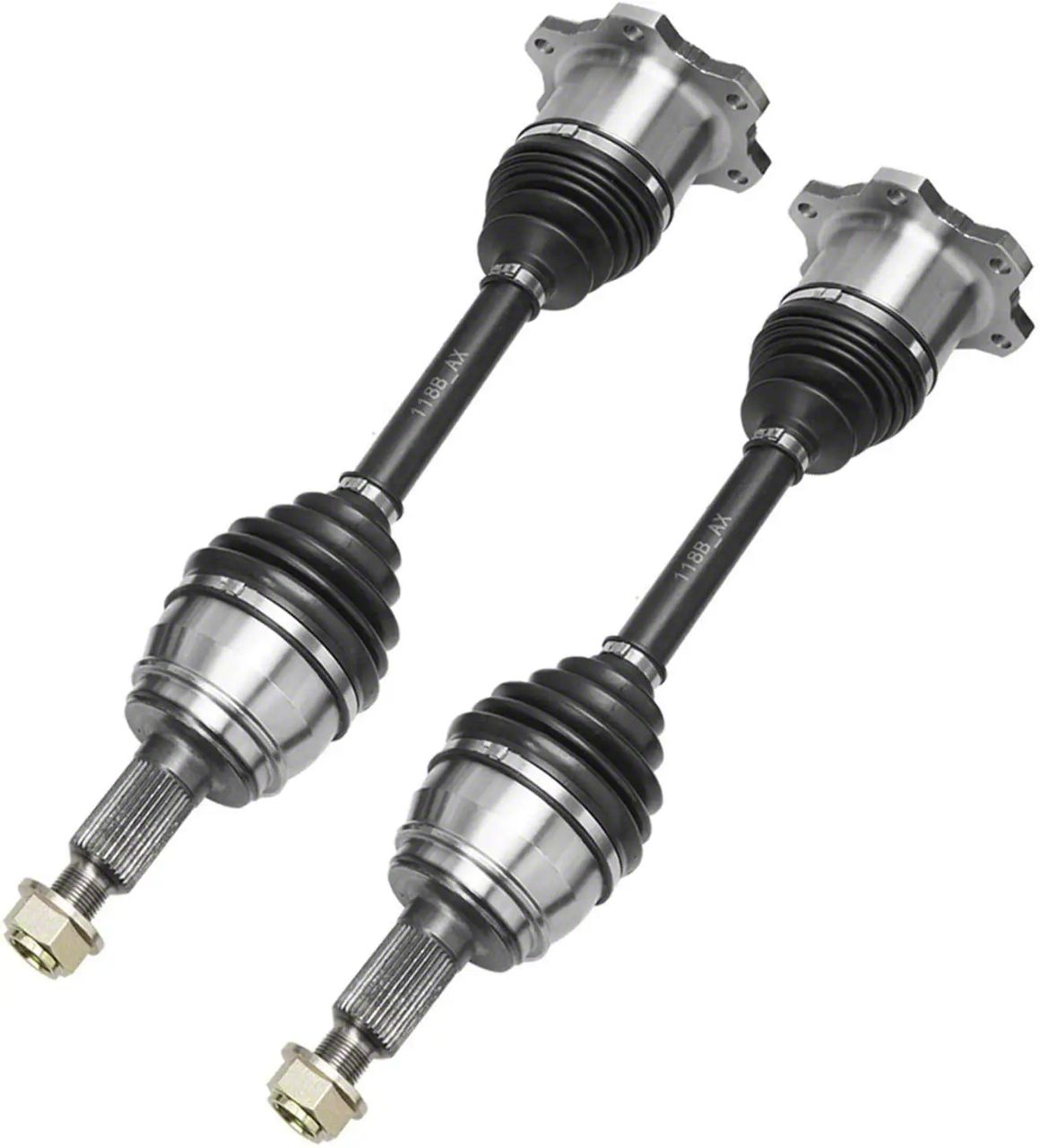 Construction and Appearance. These CV Axles are crafted in an ISO9002 certified facility, ensuring high standards of quality and reliability. The axles feature a matte black and polished chrome finish, which not only enhances their visual appeal but also offers robust protection against impact, wear, and fatigue.