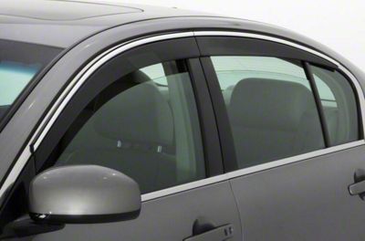 Protect Your Interior. The thoughtful design of the Low Profile Ventvisor Window Deflectors plays a crucial role in minimizing the intrusion of rainwater into your vehicle. These deflectors are precisely contoured to effectively channel precipitation away from any slightly opened windows. This helps in ensuring that your vehicle's interior remains dry and protected during wet weather.