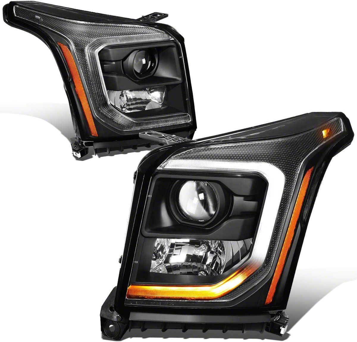 Enhanced Visibility. The Projector Headlights are designed to replace factory halogen headlights on Yukons, providing improved lighting performance and road visibility. These OE style projector headlights feature amber corners, black housing, and a clear lens for a sharp, modern look.